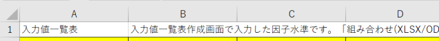 (作成時と同上)組み合わせ作成する為に必要な「項目(=因子)」と「値(=水準)」を設定します。