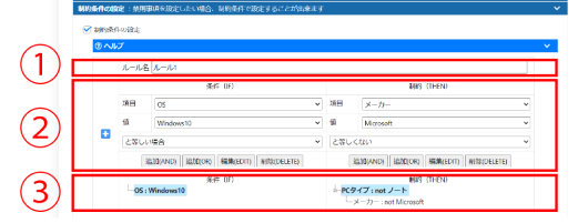 ② ルールに対しての条件(IF)と制約(THEN)を指定します。